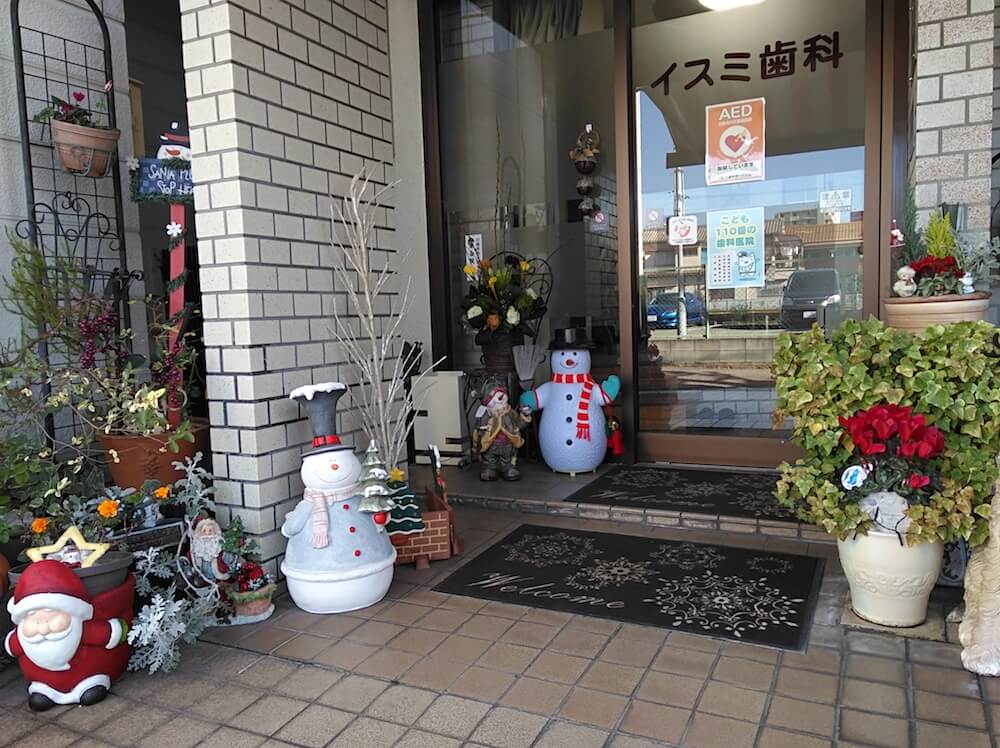 井角歯科もクリスマスの飾りつけをしました。玄関や待合室、当院自慢の中庭にも…♪